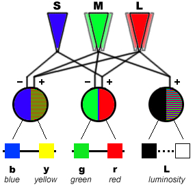 The neuronal pathway operates through colour opponent encoding of chromatic information in first-order postsynaptic cells (cone-specific horizontal cells; Stell et al., 1994; Verweij et al., 1996). These horizontal cells play an important role in the development of colour constancy, i.e. a detected object generates the same spectral signal regardless of the background light (Masland, 1996).