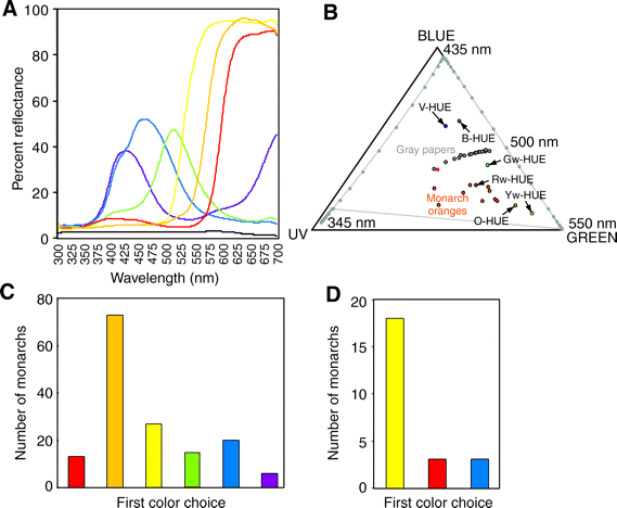 Obviously, colour preference can only exist in an animal with colour vision, i.e. an animal with the ability to discriminate between spectral wavelengths through different, simultaneously active visual pigments. Being a psychological phenomenon, colour preference should not be confused with colour sensitivity. Colour preference must have a physiological (neuronal / hormonal) basis. This property can be either innate or learned by association; in both cases the neural basis is genetically determined. Accordingly, colour preference can become a hereditary feature. There is much diversity of innate colour preference. Many naive animals prefer short wave light (e.g. UV in most flying insects, Gao et al., 2008; violet in bees, Raine & Chittka, 2007; blue in humans, Crozier, 1999; and apes, Wells et al., 2008). Others prefer longer wavelengths (yellow and green in Colorado beetles, Otálora-Luna & Dickens, 2010; orange in some butterflies, Pohl et al., 2011; and even red in some birds, Schmidt & Schaefer, 2004 and juvenile salmon, Clarke & Sutterlin, 1985). Still, all these animals seem to be able to adapt their colour preference in a profitable sense as well as to avoid unpleasant experiences (e.g. Spence & Smith, 2008; Ham et al., 2006; Clarke & Sutterlin, 1985).