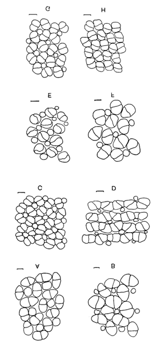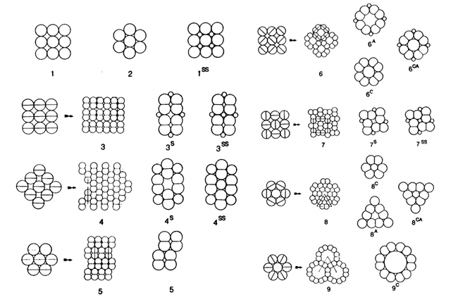 According to the mentioned conditions, premises and demands, a number of mosaics were studied, varying from mere single cone patterns, combinations of single and double cone patterns to mere double cone mosaics. The model depends on only two parameters (cited from Barel, 1993): alpha for the shape of the double cones and bèta for their mutual orientation and hence for the configuration of the mosaic.