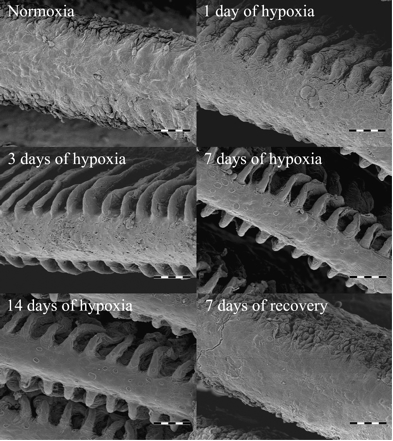 The photopigments were not expected to change under the influence of colour deprivation since microspectrophotometry in various species that were raised for several generations under bright laboratory conditions showed distinctive differences among these pigments (Van der Meer & Bowmaker, 1995; Carleton et al., 2005). This assumption was affirmed by studies on Aequidens pulcher after rearing in various monochromatic light regimes (Kröger et al., 1999). Exposure of this species to the different monochromatic lights appeared “to have little or no effect on the lmax of the various spectrally distinct photopigments”. In contrast, however, to colour deprivation in H. sauvagei, it is the absence of the longer wavelengths that caused a reduction of single cones in A. pulcher. When raised in monochromatic blue light “the outer segments of the double cones were longer” and “nearly 20% of the single cones were missing in the central retina”.  Kröger et al. explained these results as a retinal respond to spectral deprivation “in a compensatory fashion aimed at balancing the input from the different cone types to second order neurons”. Once again, the contrasting results between H. sauvagei and A. pulcher warns us against hasty conclusions.
