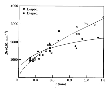 The angular cell density (H; number per unit visual angle) was calculated using: