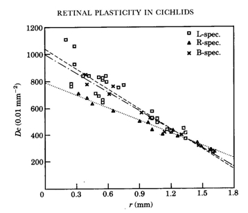 It is a common feature in cichlids (see Witte et al., 1990 for a review) and several studies of the visual system in cichlids have demonstrated the occurrence of light-induced phenotypic modulation (Zeutzius & Rahmann, 1984; Zeutzius et al., 1984; Van der Meer & Anker, 1986; Kröger et al., 1999, 2001, 2003).