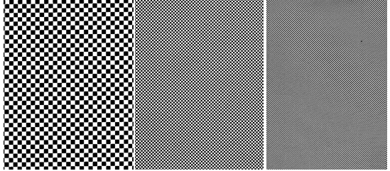 Test slides of a black and white chess-board pattern were produced by photographing a screen pattern (alfac-tone 05306 & 05301) at different magnifications, resulting in a variable distance between similar squares (black or white) from 10 to 0,24 mm. The slide with the smallest squares was practically neutral grey and used as the positive stimulus. Accordingly, the rewarding stimulus was never constant during the entire experiment, providing a high constant level of learning (Neumeyer, 1984).
