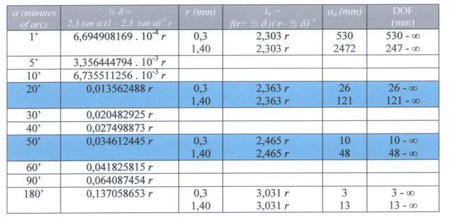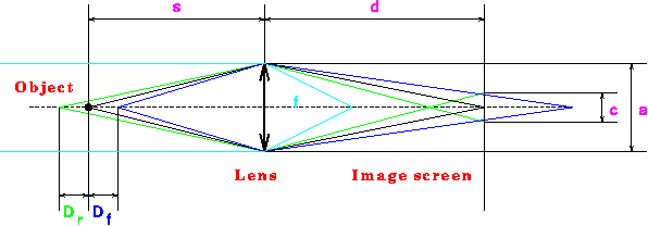 The depth of field can be calculated (e.g. Sushkin, 1995) using: