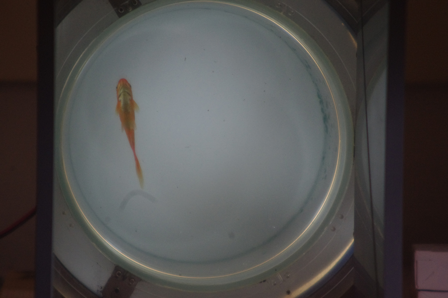 To ascertain the usefulness and applicability of the apparatus, polarization sensitivity was tested in common goldfish (Carassius auratus), a species of which it is quite certain that it possesses polarization sensitivity (Roberts & Needham, 2007; Hawryshyn & McFarland, 1987; Kleerekoper et al., 1973). Six specimens (body-lengths of ca. 5 cm) were obtained from a local pet shop and kept in a SuperFish Aqua 20 tank with an Aqua-Flow dual action filter (Aquadistri BV, The Netherlands) at room temperature (18-20oC).