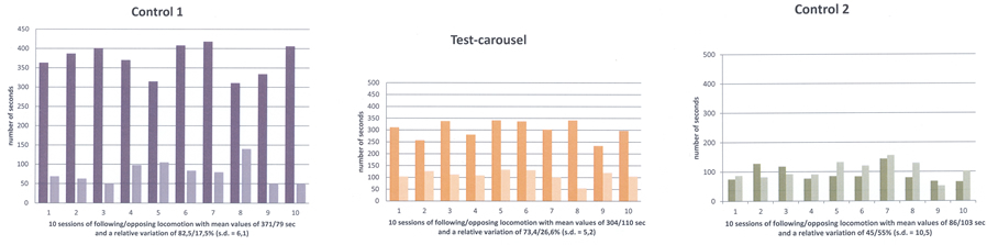 Only after a positive OMR had been recorded, the object was exposed to the Test-carousel and its movements were registered in a similar way as in Control 1. Afterwards, the collected data could provide information on the animal’s ability to perceive any modulation in the stimulus.
