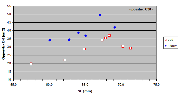 All data were transported into Excel (Microsoft Excel 2000) and analysed with SPSS (Windows version 10.0; Huizingh, 1999). The Statistic tests we used in order to compare the old and the new populations were the parametric General Linear Model and the non-parametric Mann-Whitney test (Buijs, 1994).